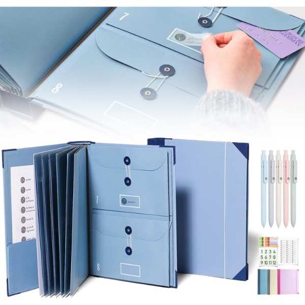 Περιλαμβάνει 10 επεκτάσιμους φακέλους (6 μεγάλου μεγέθους, 4 μισού μεγέθους) για να χωράνε έως 10 φύλλα το καθένα.