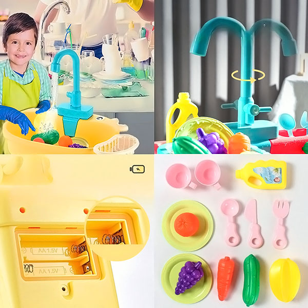 Ο νεροχύτης διαθέτει πραγματικό τρεχούμενο νερό, κάνοντας το παιχνίδι να μοιάζει με πραγματικό. Το τρεχούμενο νερό προσθέτει μια συναρπαστική πινελιά, βοηθώντας τα παιδιά να εξερευνήσουν και να αλληλεπιδράσουν με τον κόσμο γύρω τους μέσα από τον φακό της καθημερινής ζωής.