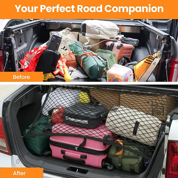 Το NETLASTIK κρατάει τσάντες, ψώνια, αθλητικό εξοπλισμό, αποσκευές ή χαλαρά αντικείμενα σταθερά στη θέση τους κατά τη διάρκεια κάθε διαδρομής. Τέλος στα μετακινούμενα φορτία, τα μπουκάλια που κυλούν ή την απροσδόκητη ακαταστασία — μόνο ασφαλής και σταθερή μεταφορά στο πορτ-μπαγκάζ κάθε κανονικού αυτοκινήτου.