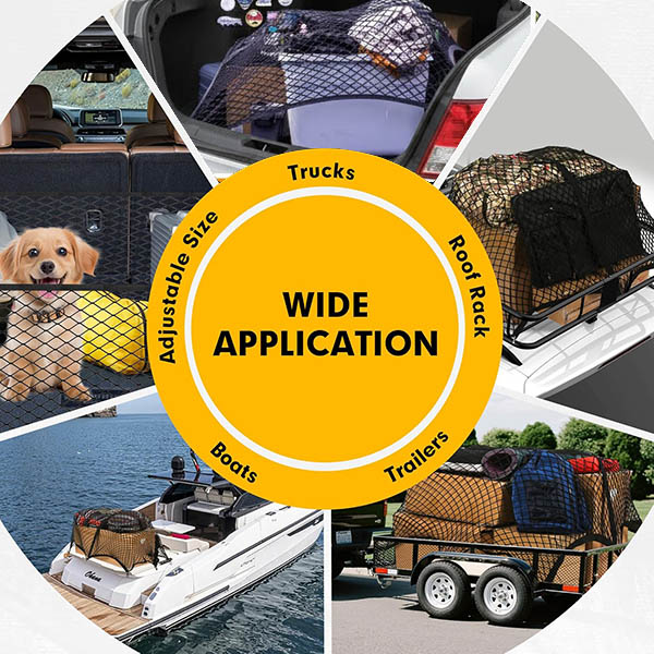 Ιδανικό για τα καθημερινά ψώνια, οικογενειακά ταξίδια, αξεσουάρ κατοικίδιων, εργαλεία, εξοπλισμό κάμπινγκ, αθλητικό εξοπλισμό, παιχνίδια παραλίας ή ακόμα και για την οργάνωση αντικειμένων στο σπίτι. Ένα δίχτυ — ατελείωτες χρήσεις. Κατάλληλο για αυτοκίνητα, SUV, βαν, τρέιλερ, σχάρες οροφής ακόμα και σκάφη.